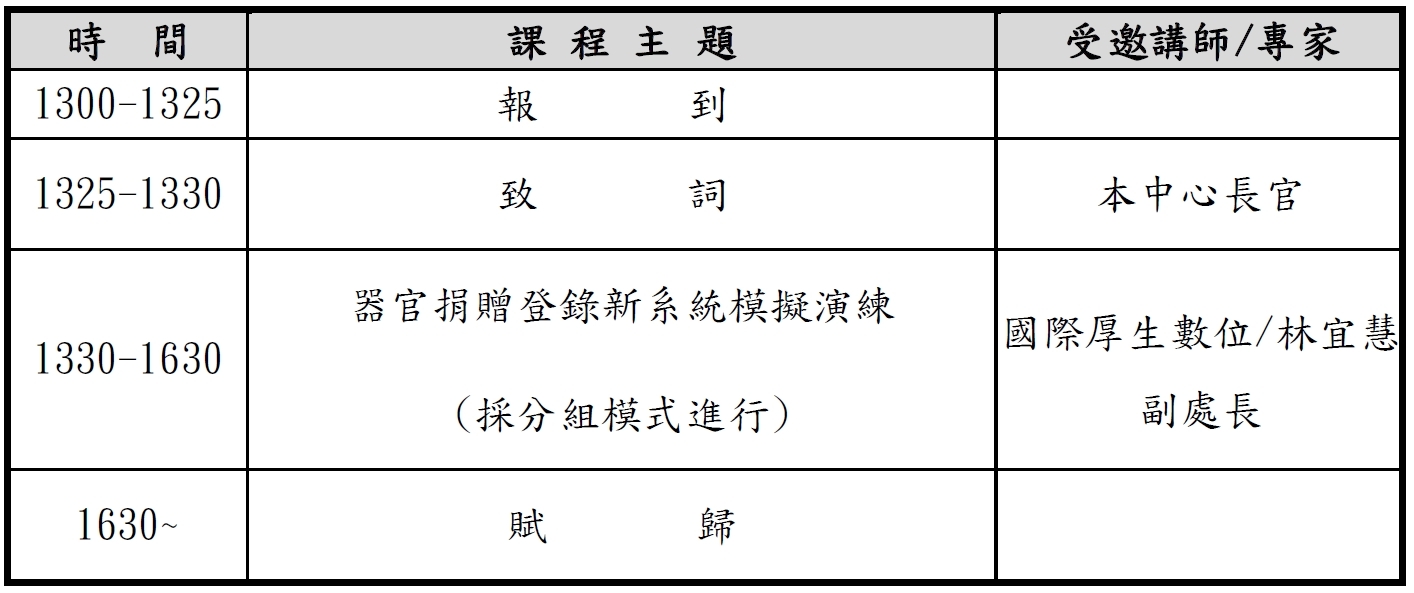 📢113年度器官捐贈移植協調人員繼續教育課程【第二場】